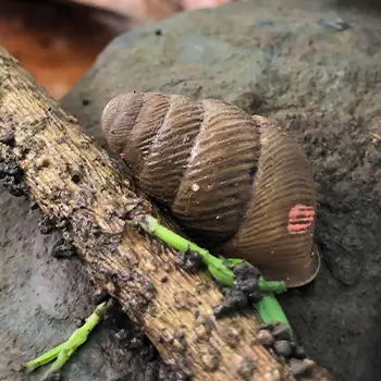 In 2022, the team collected Pachystyla bicolor var. mauritiana to establish a captive breeding colony at Ebony Forest. The specially designed enclosures exclude ants, rats, and other predators, giving the snails the best chance to thrive. To date, over 240 juveniles have been produced, with their growth and breeding monitored monthly.